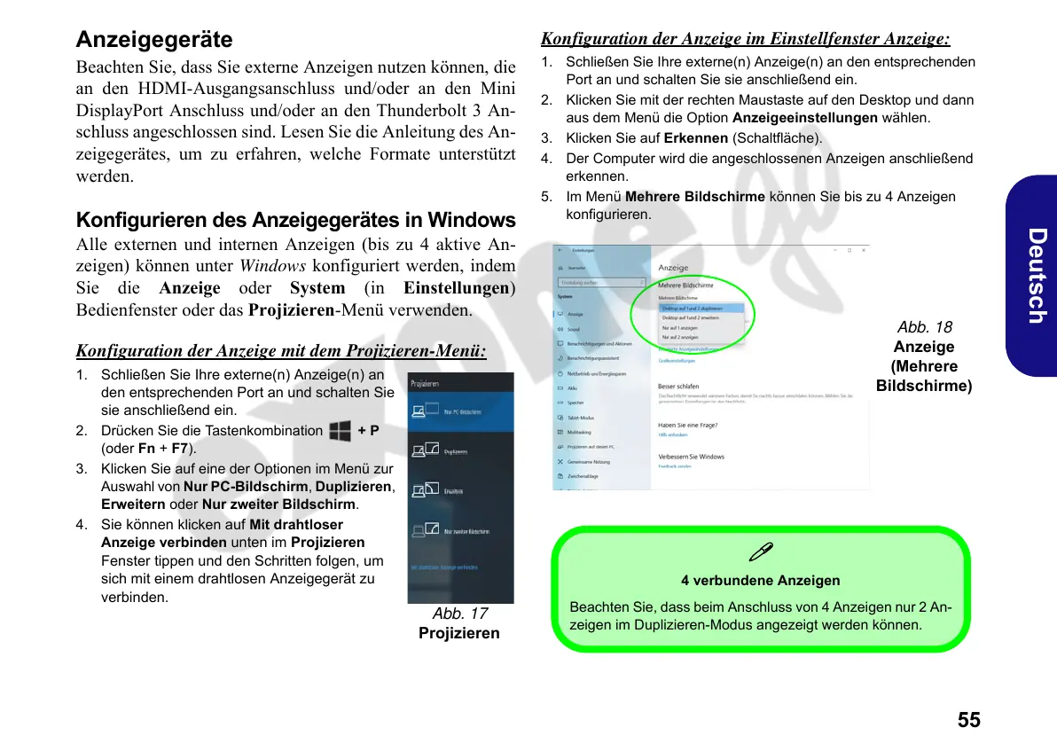 Konfiguration der Anzeige mit dem Projizieren-Menü: