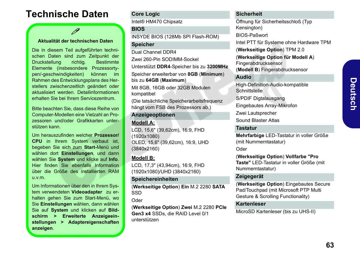 Die in diesem Teil aufgeführten techni-