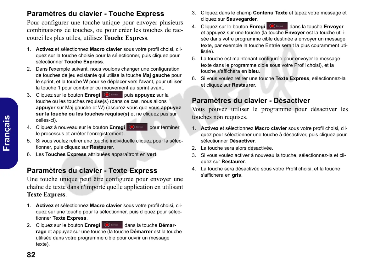 courci les plus utiles, utilisez Touche Express.