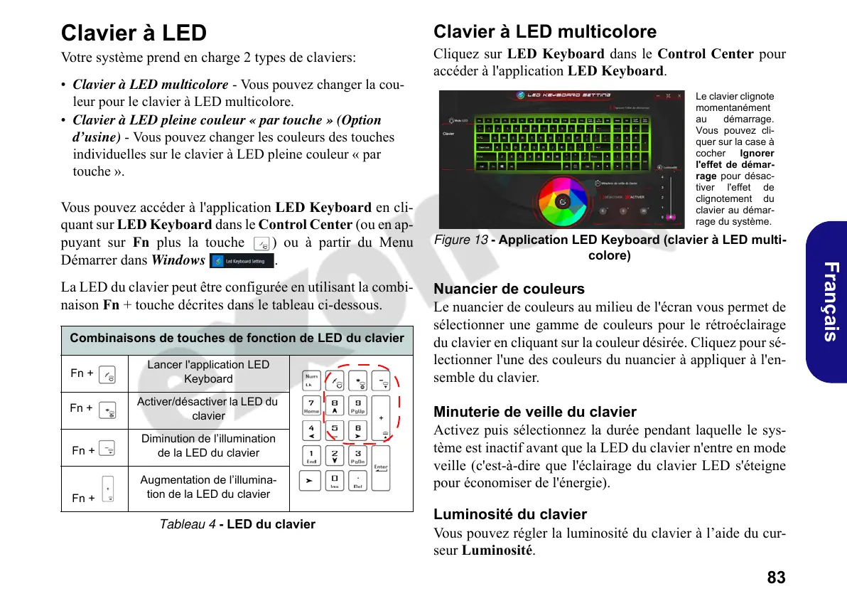 Tableau 4 - LED du clavier