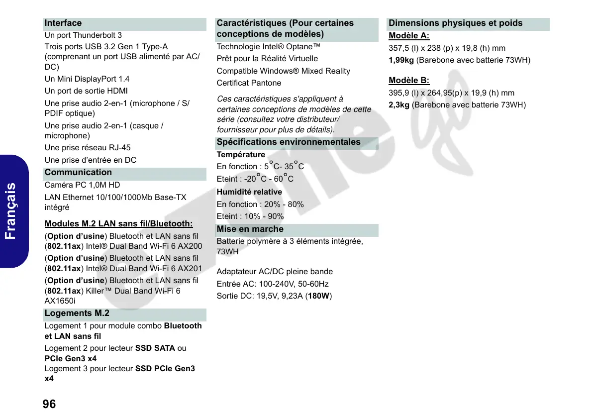 Sortie DC: 19,5V, 9,23A (180W)