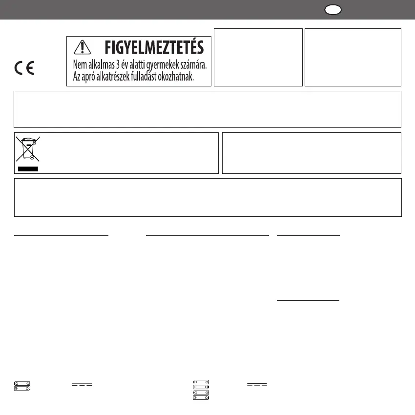FIGYELMEZTETÉS ! Nem alkalmas 3 év alatti gyermekek számára. Az apró alkatrészek fulladást okozhatnak. Figyelmeztetés : Ne dobja el ezt a tájékoztatót, mert fontos