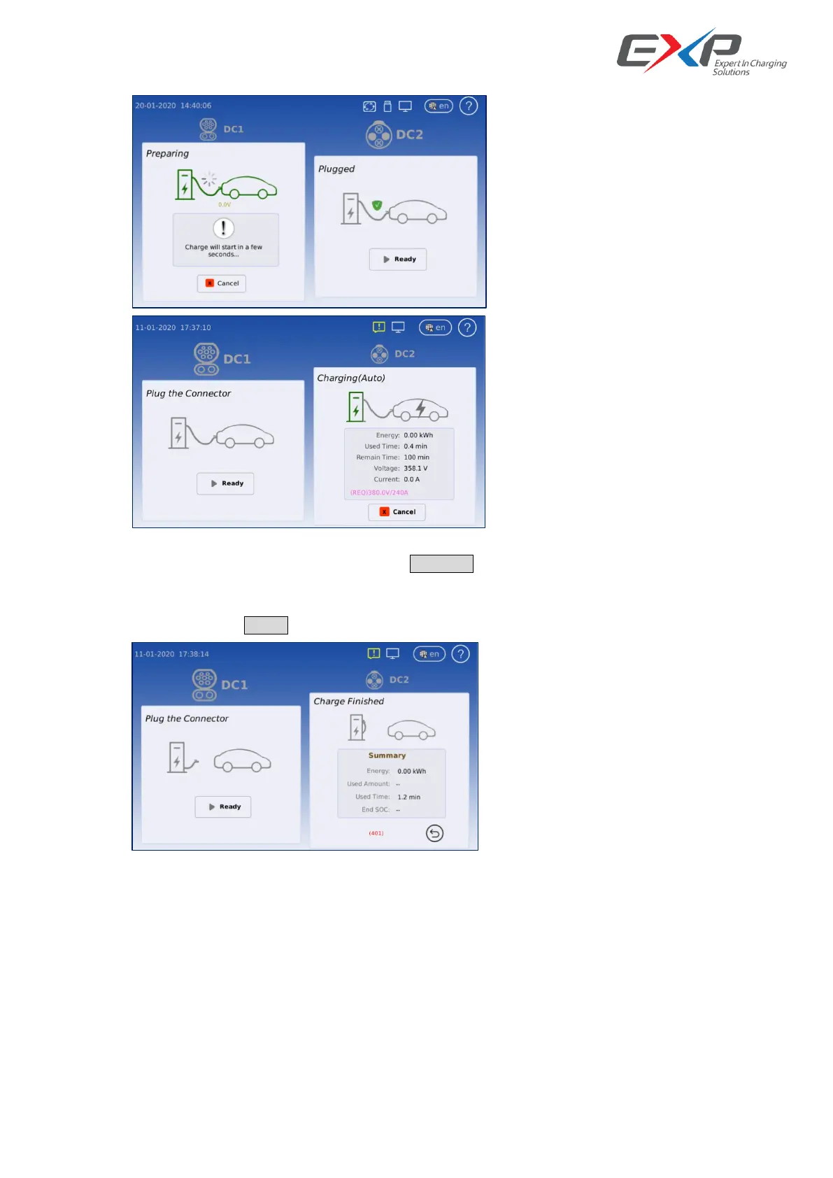 terminated by swiping the RFID card again. Or click the<CANCEL>button to stop the charging process, if it is OTP