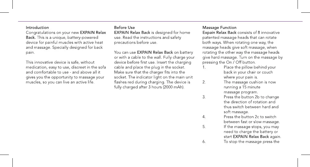 Expain RELAX BACK - EXPAIN Relax Back Product Introduction; EXPAIN Relax Back Pre-Use Guide; EXPAIN Relax Back Massage Operation