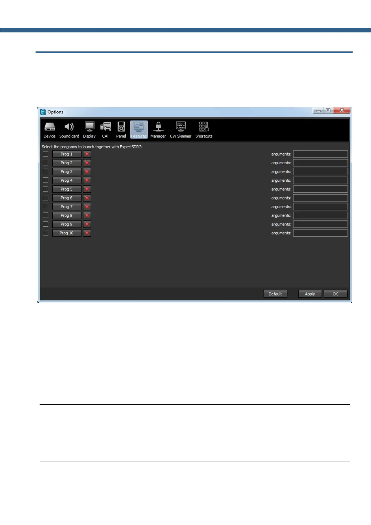 This feature allows you to launch required programs by launching the transceiver software.