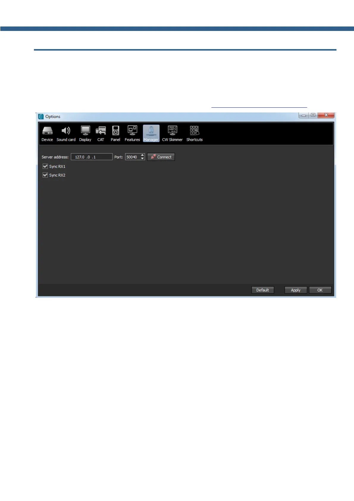 Set the Sync RX1 checkbox to synchronize RX1 receiver with remote RX1 receiver.