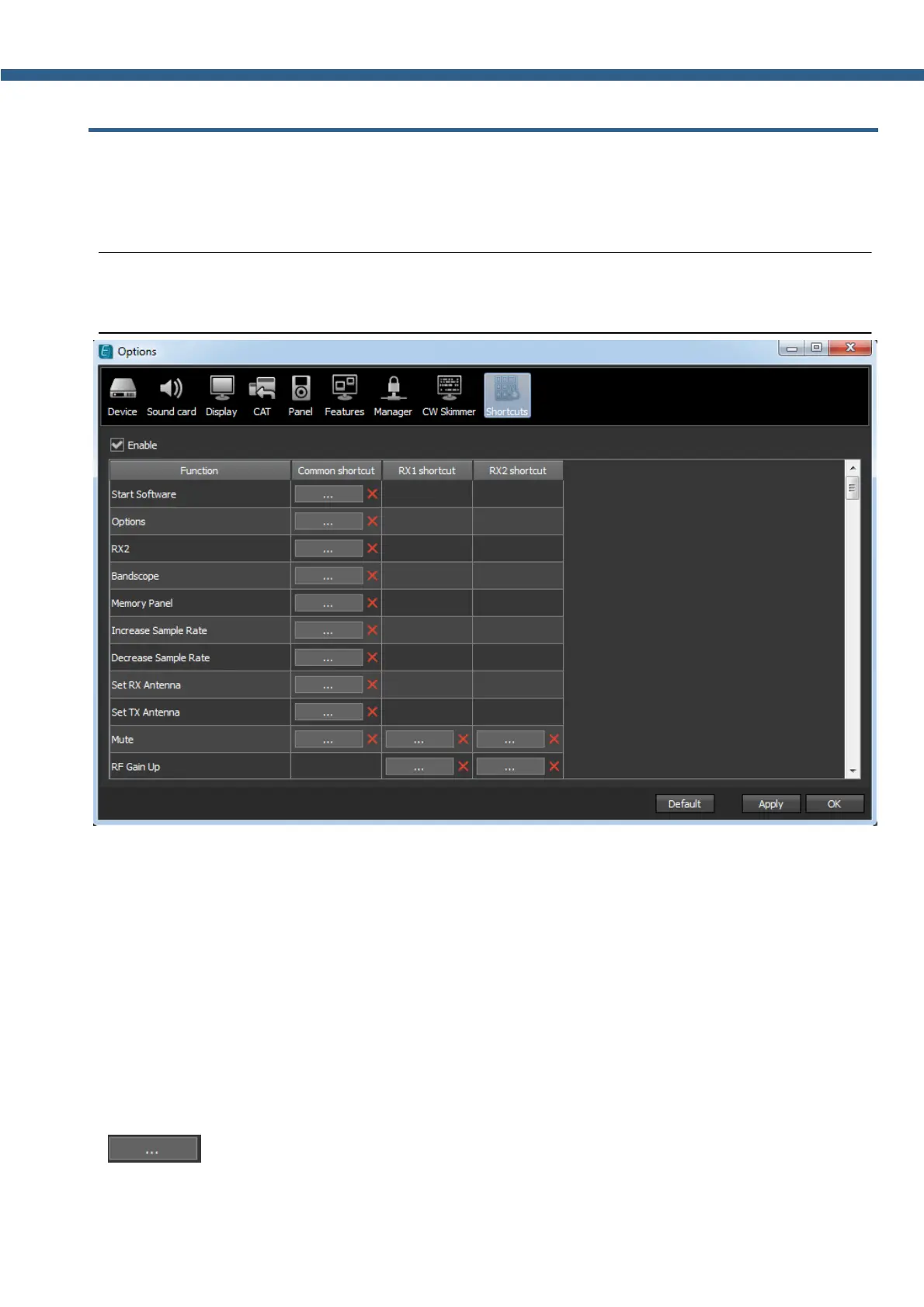 Shortcuts will be active only if the transceiver's software window is in focus.