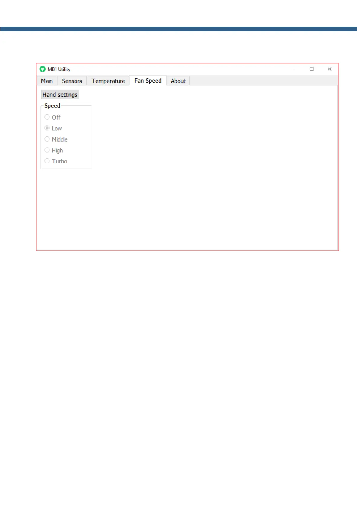Press the Hand settings button to enable manual control of fan speed via presets.