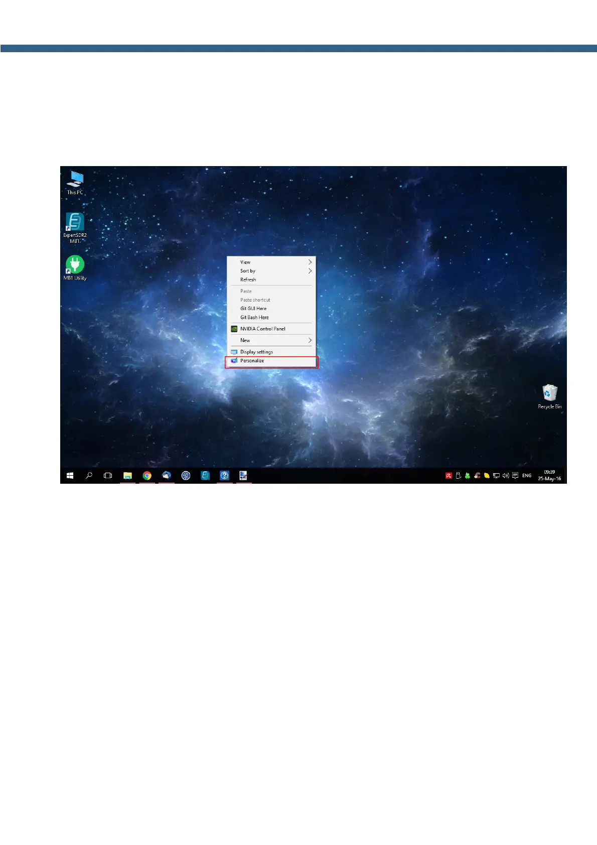 2. In the appeared menu select the Personalize section, by the click of the left mouse button