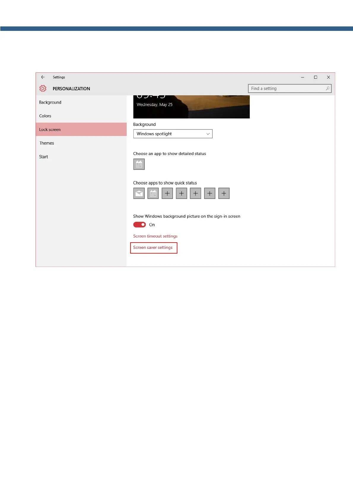 3. In the Personalization window select Lock screen menu-> Screen saver settings, by