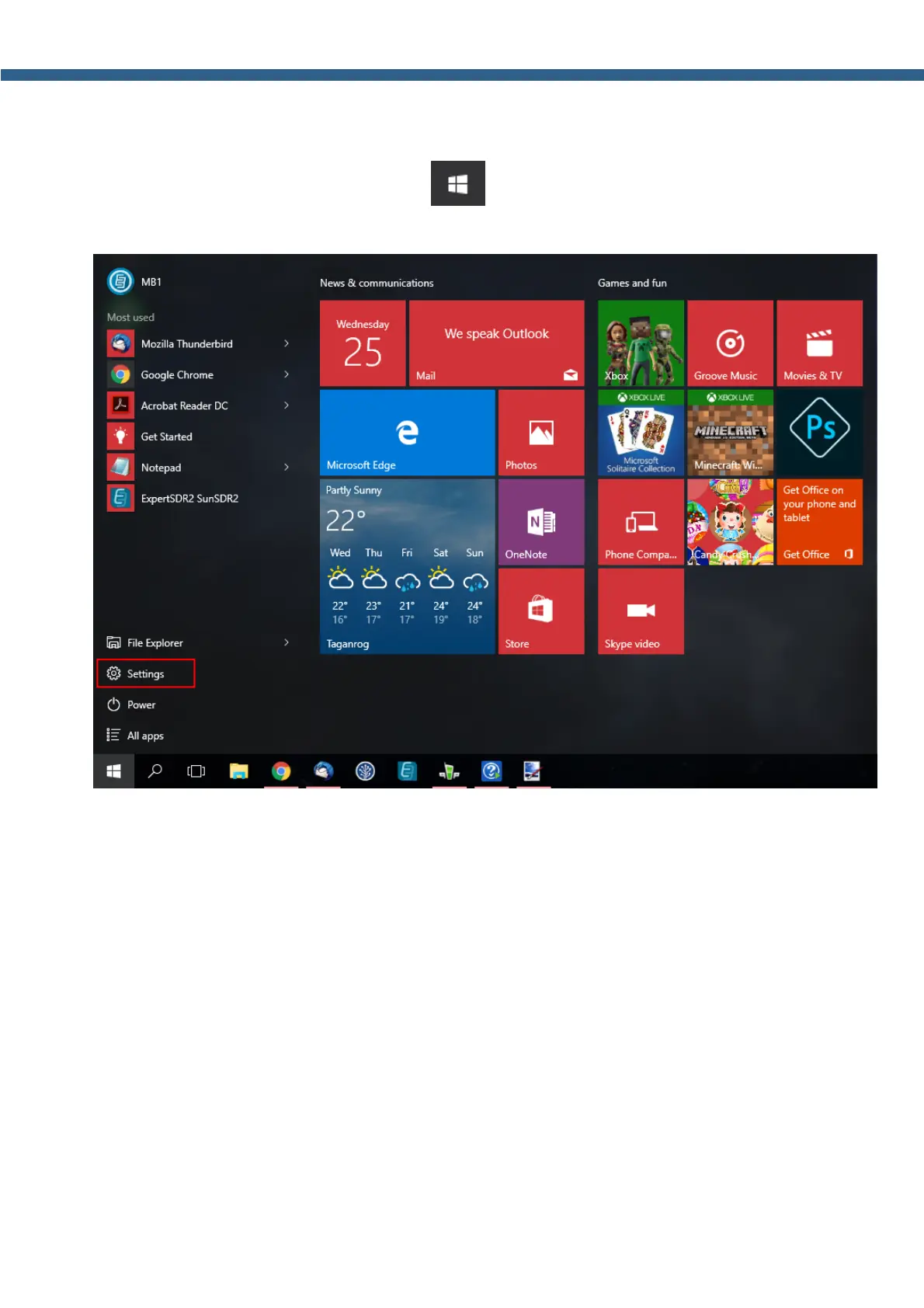 1. Open the Start menu, by pressing the in the left bottom corner of the screen.