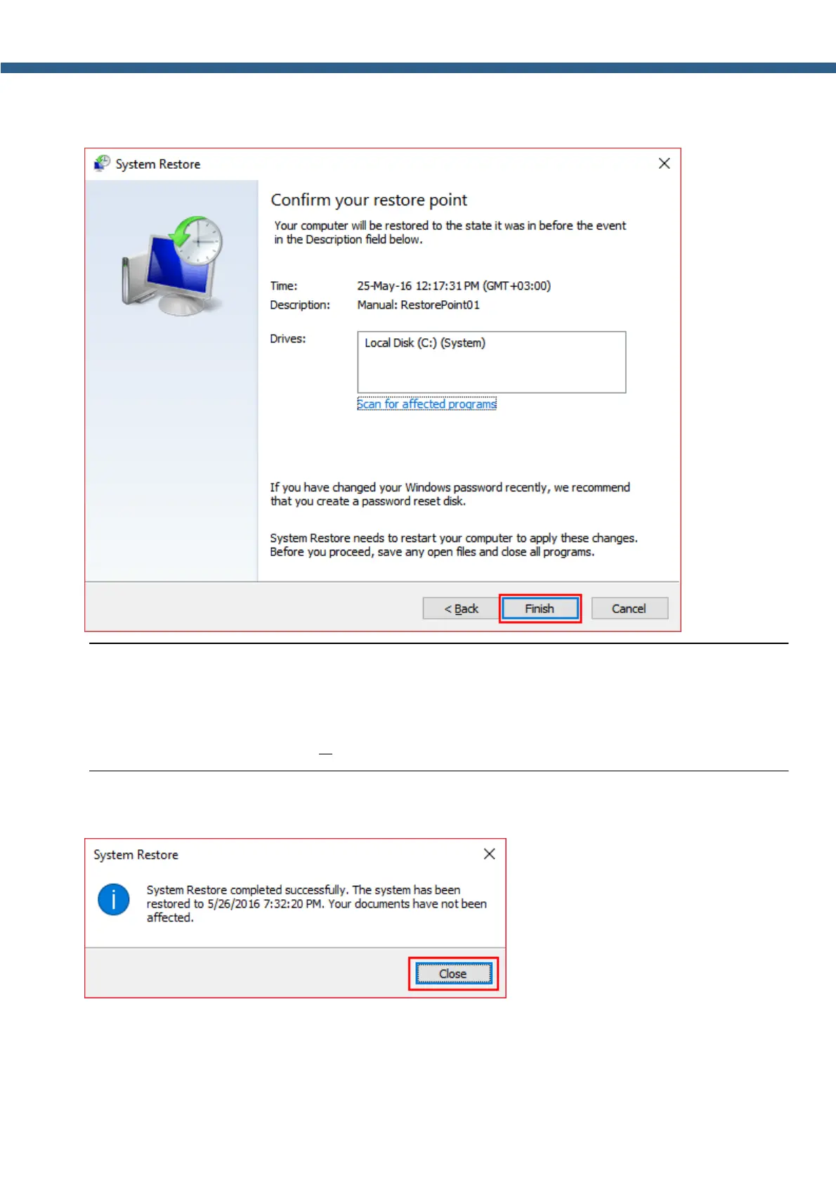 You still can refuse to restore the system on this step, by pressing the Cancel button.