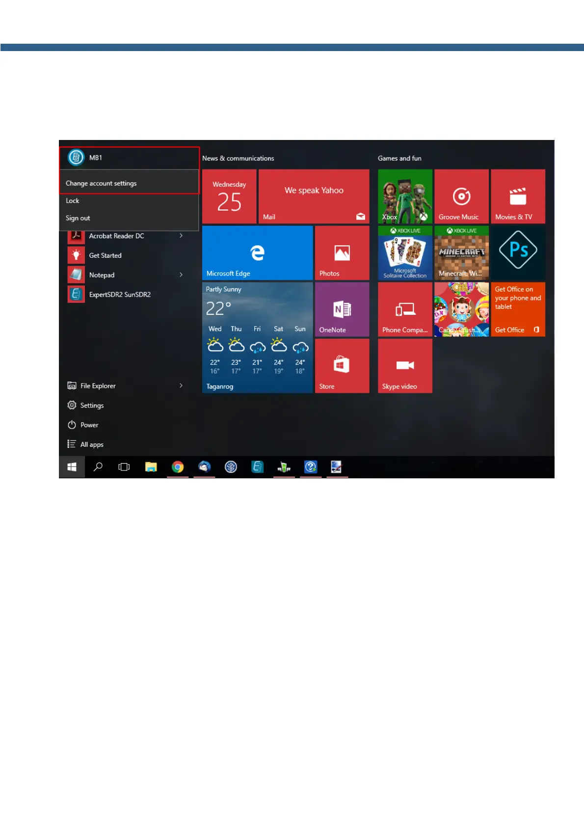1. Click the left/right mouse button on your account name in the Start menu and select