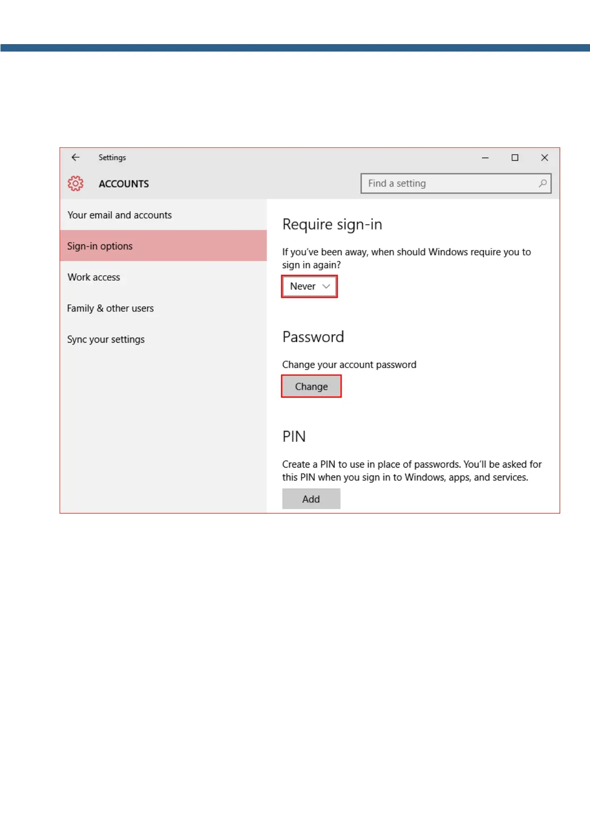 3. In the Require sign-in drop-down menu, in case you are absent for a while, select Never.