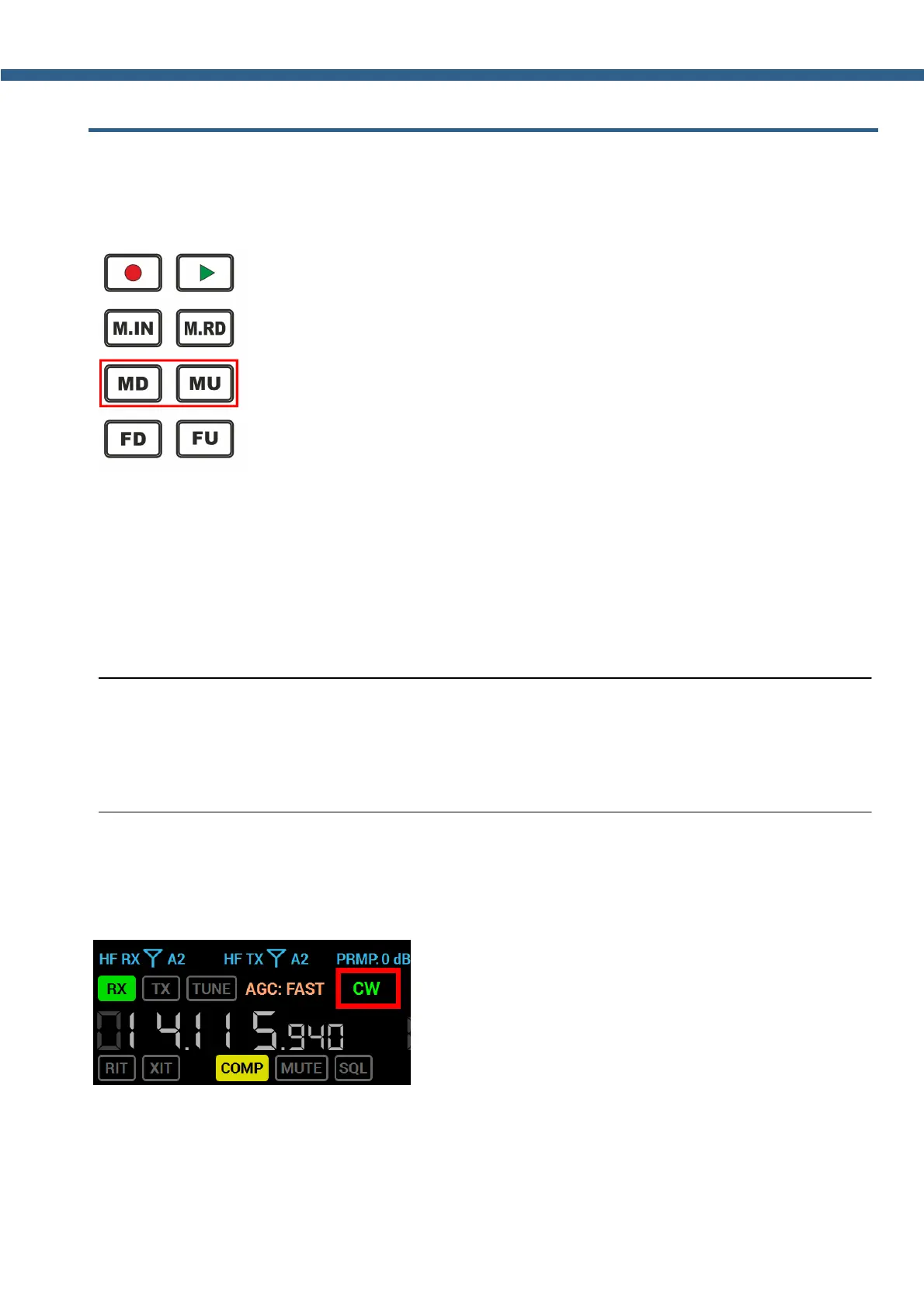 While the USB mode is active, pressing the MU button will switch on next mode - CW .