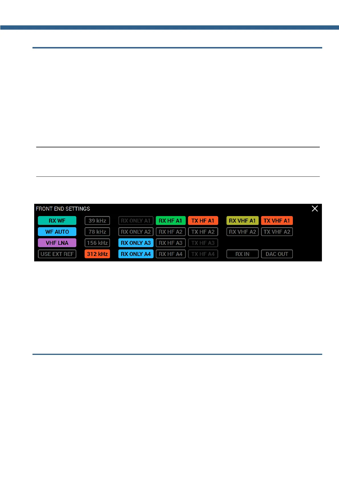 Press the RX WF button to enable wide filter for all HF band (0...65 MHz) or VHF band