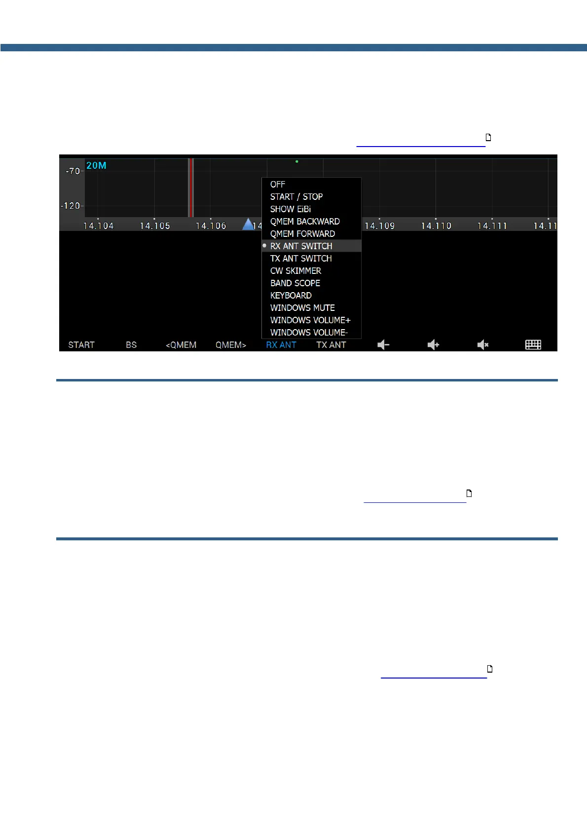 Select, with the mouse or with your finger via the touch-screen, any function RX ANT, TX ANT,