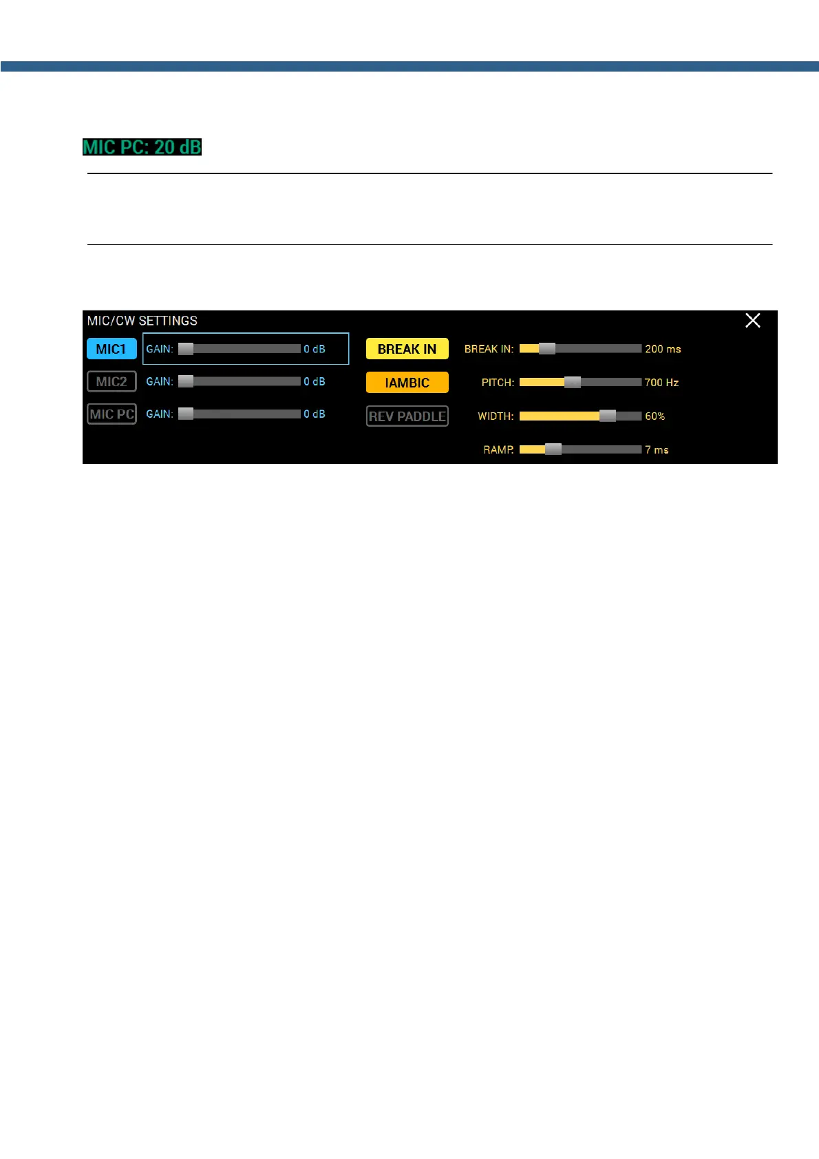 In the MIC/CW SETTING local panel you can see the microphone settings.