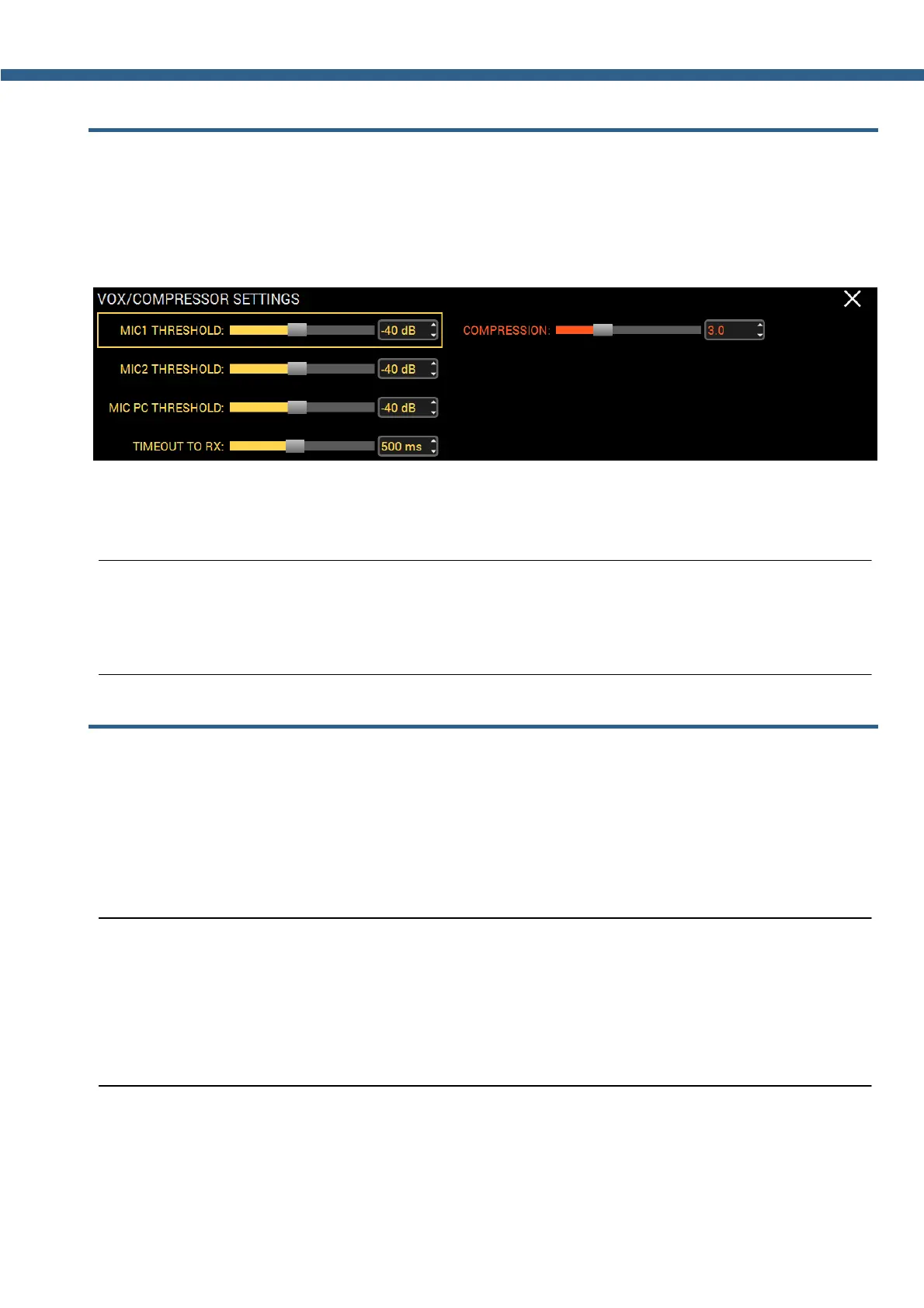 VOX threshold adjusting is carried out in the VOX and Compressor local panel.
