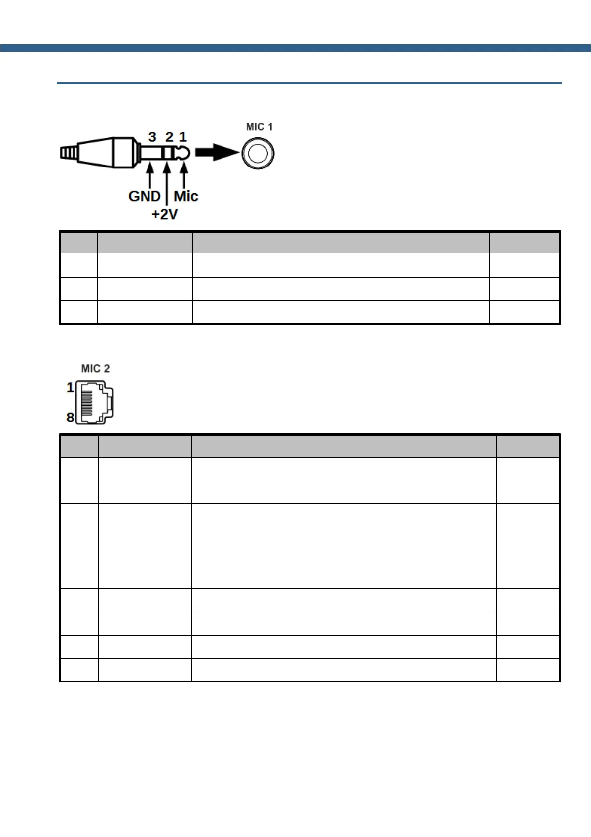 Expert Electronics MB1 - Connectors Pin-Out; Mic1; Mic2
