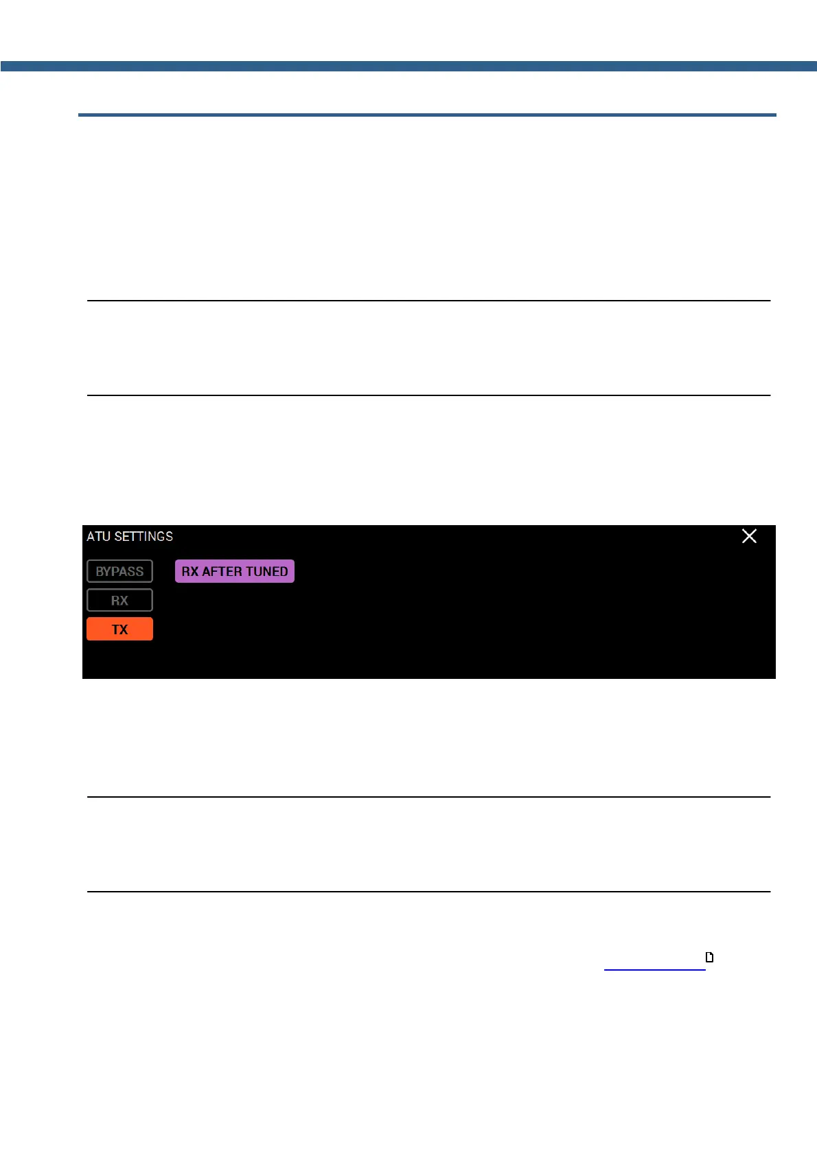 Press the TX button to enable matching in the TX mode (more details in ATU operaion ).