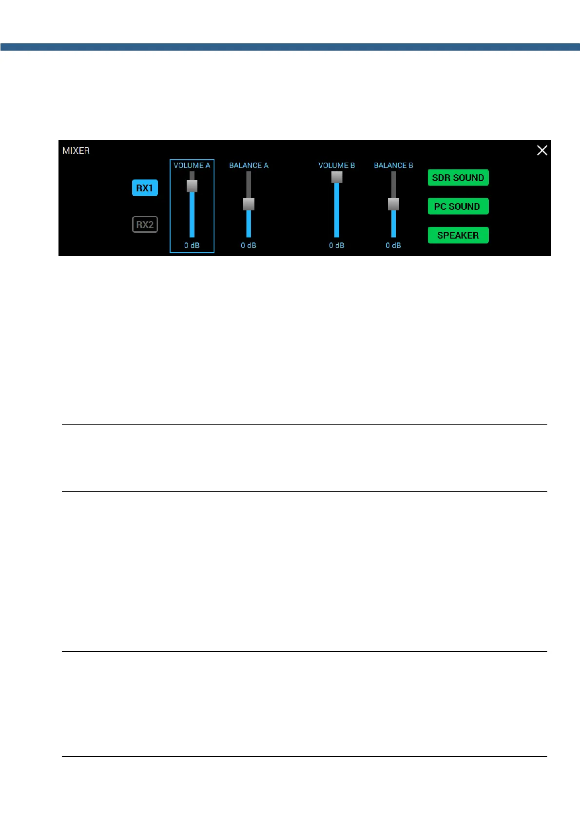 Press the RX1 to enable volume and balance control for VFO A, VFO B of the RX1.