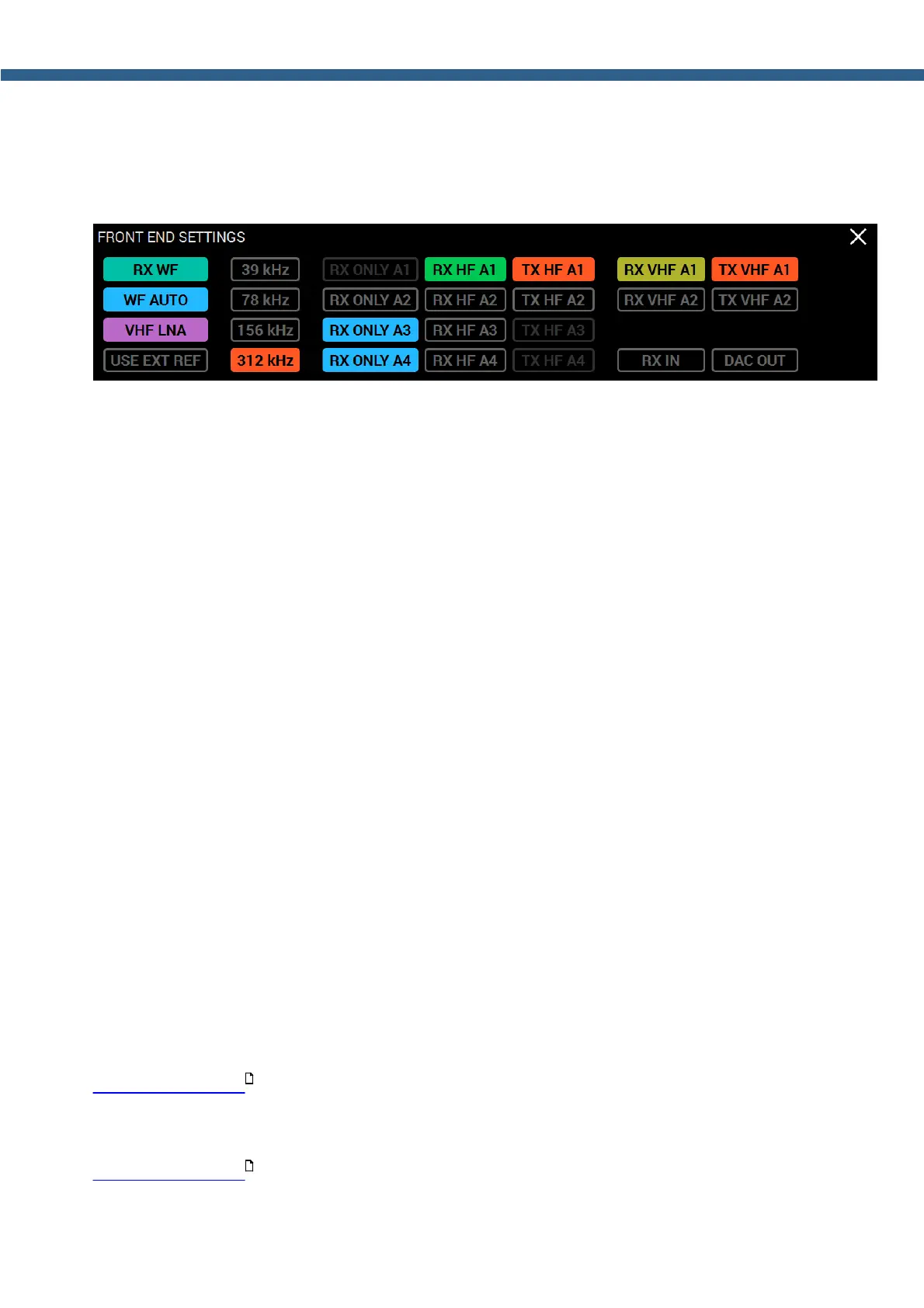 Press the RX HF Ax button to choose receive antenna for the HF band (more details in