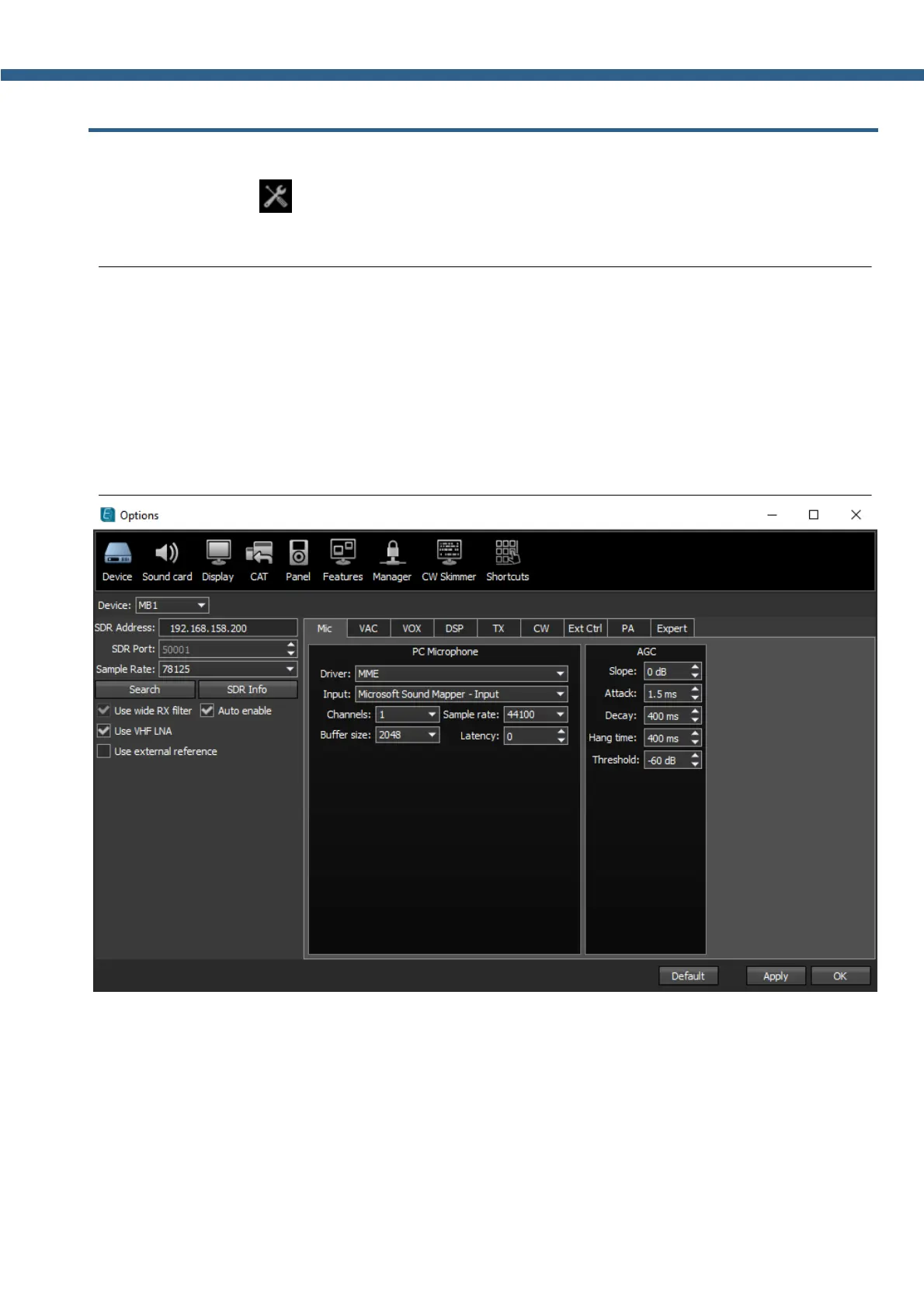 Fine tuning of the MB1 is carried out in the Options menu. You can call up the menu by