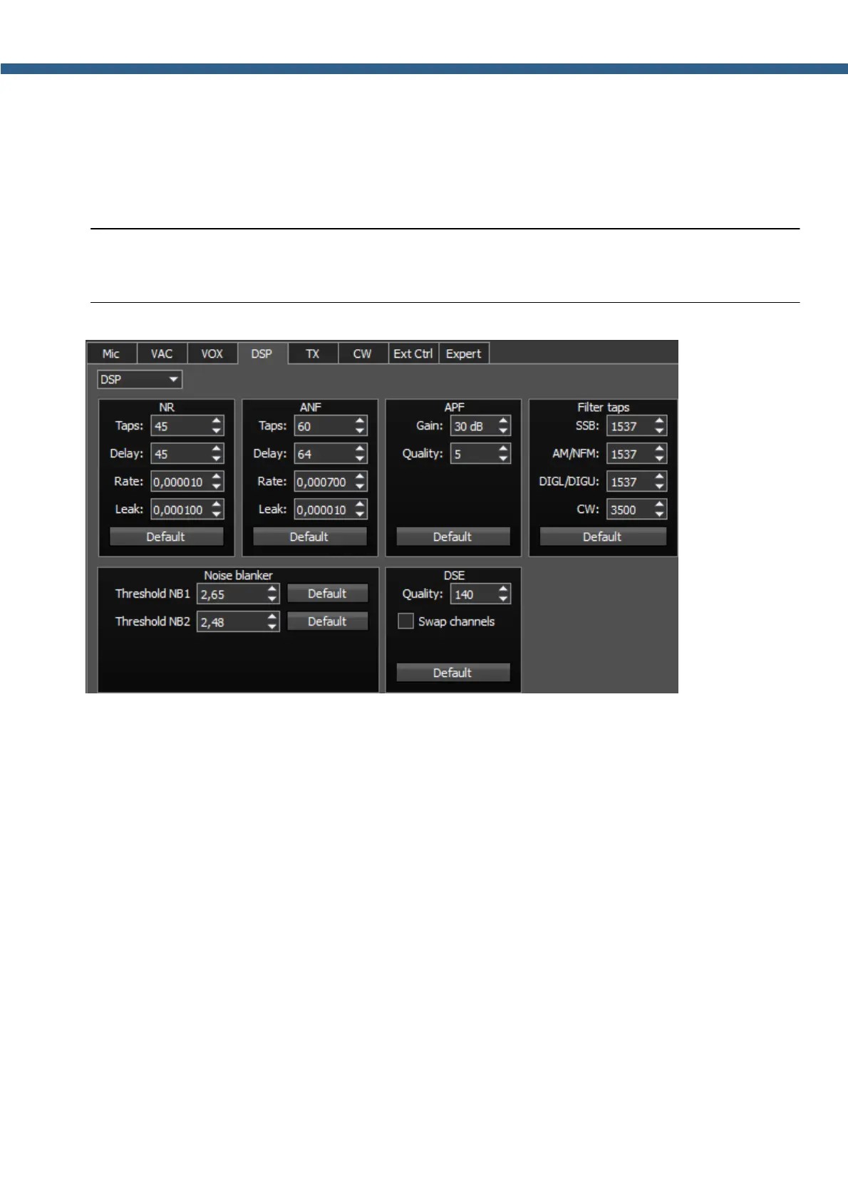 · DSE - Digital Surround Effect for CW signals. Provides a space orientation in stereo phones,