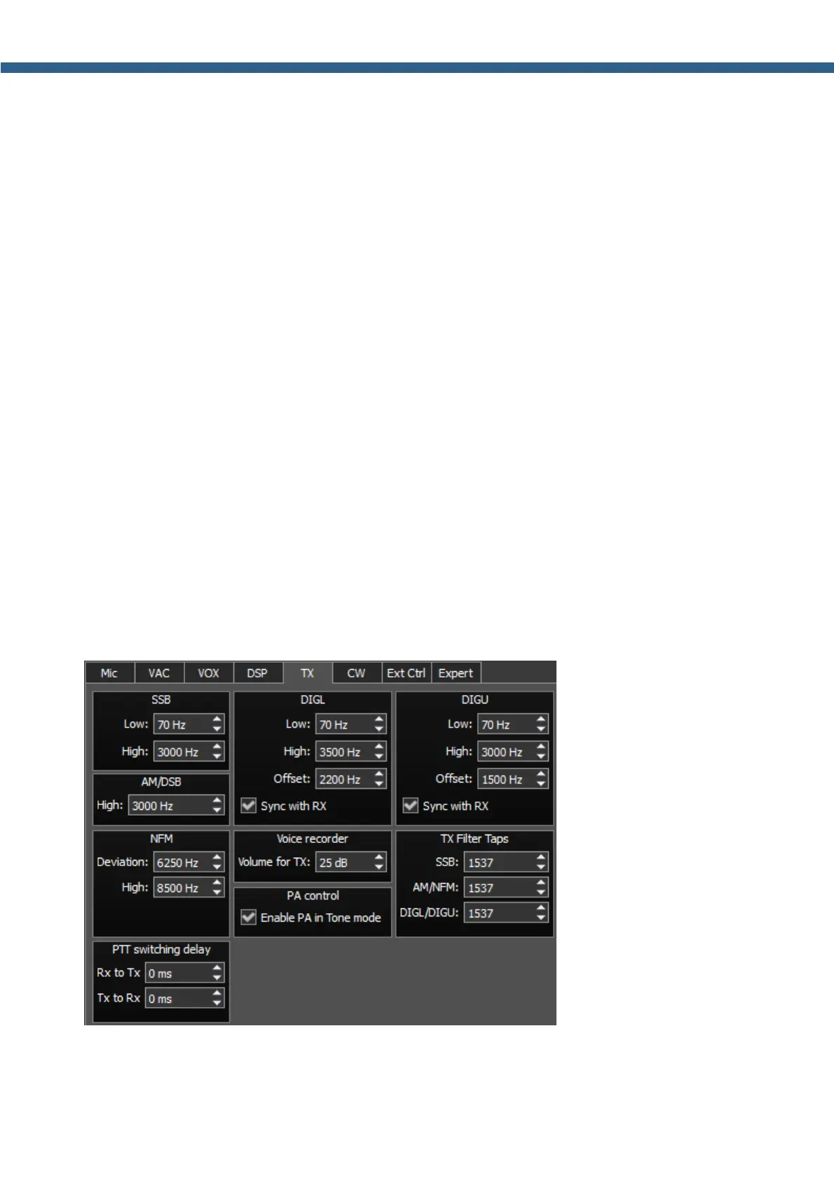 SSB/DIGL/DIGU/AM/DSB - settings for the low or/and high TX filter fronts.