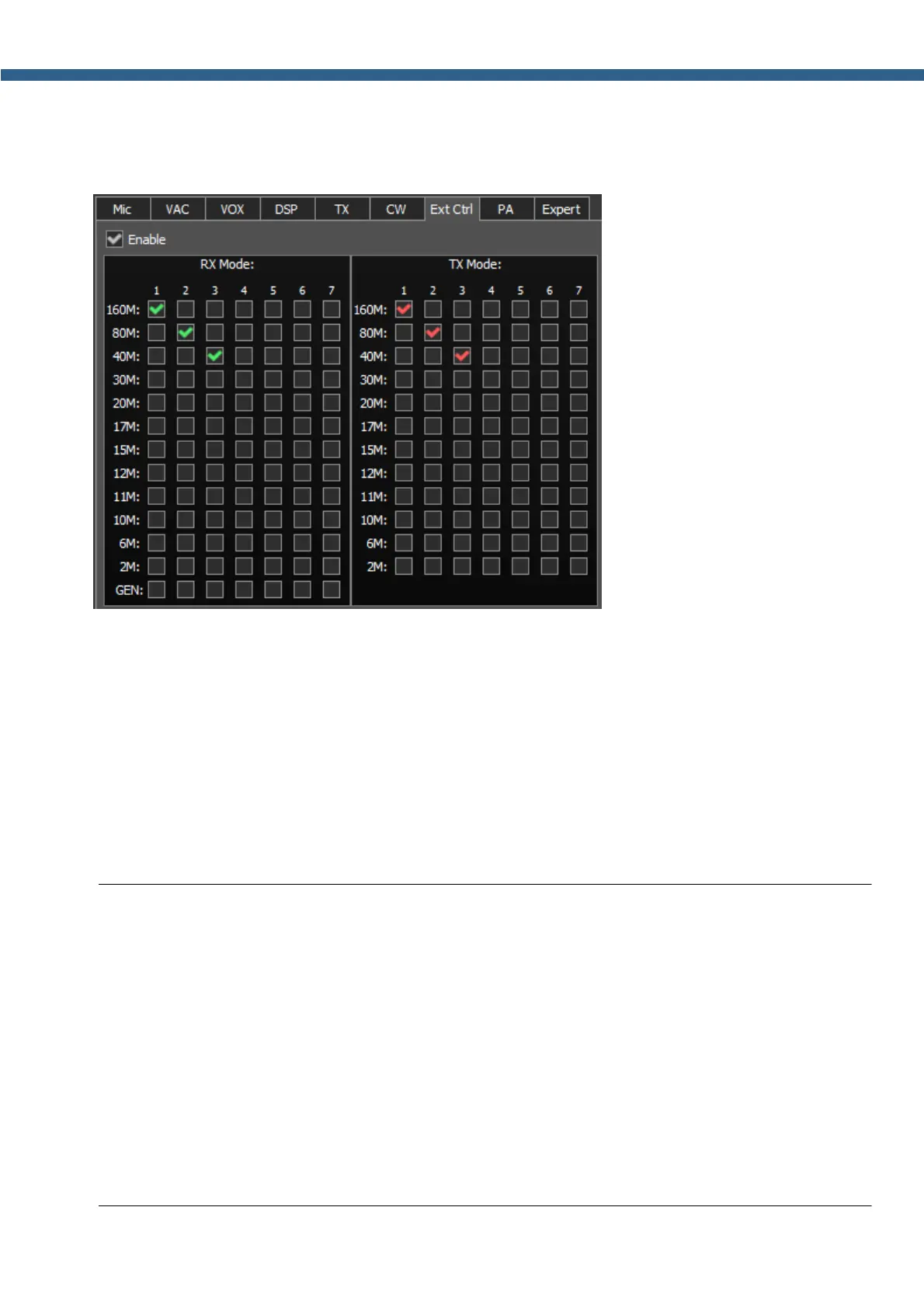 · 160...2 - Electronic key enable checkbox on the corresponding band.