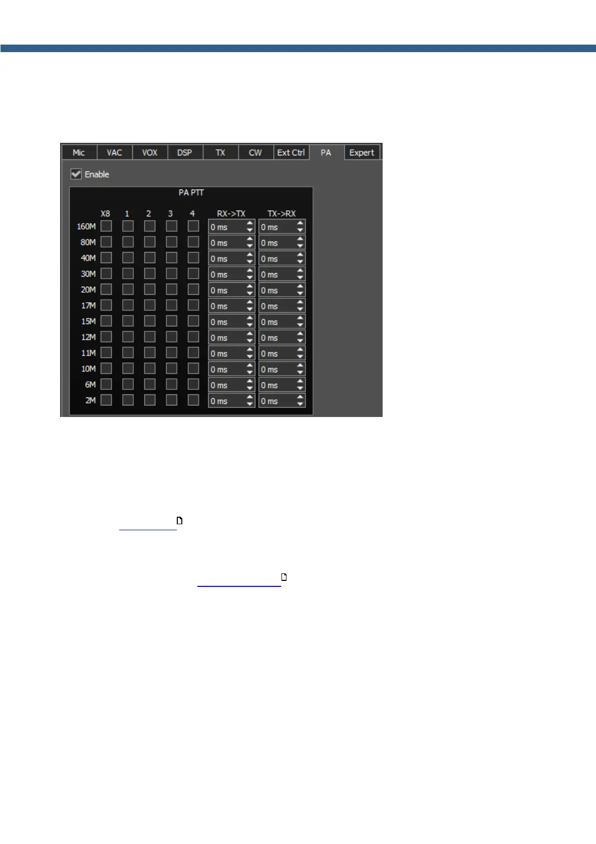 On the PA tab you can see the settings of the electronic PTT keys - which control the TX mode