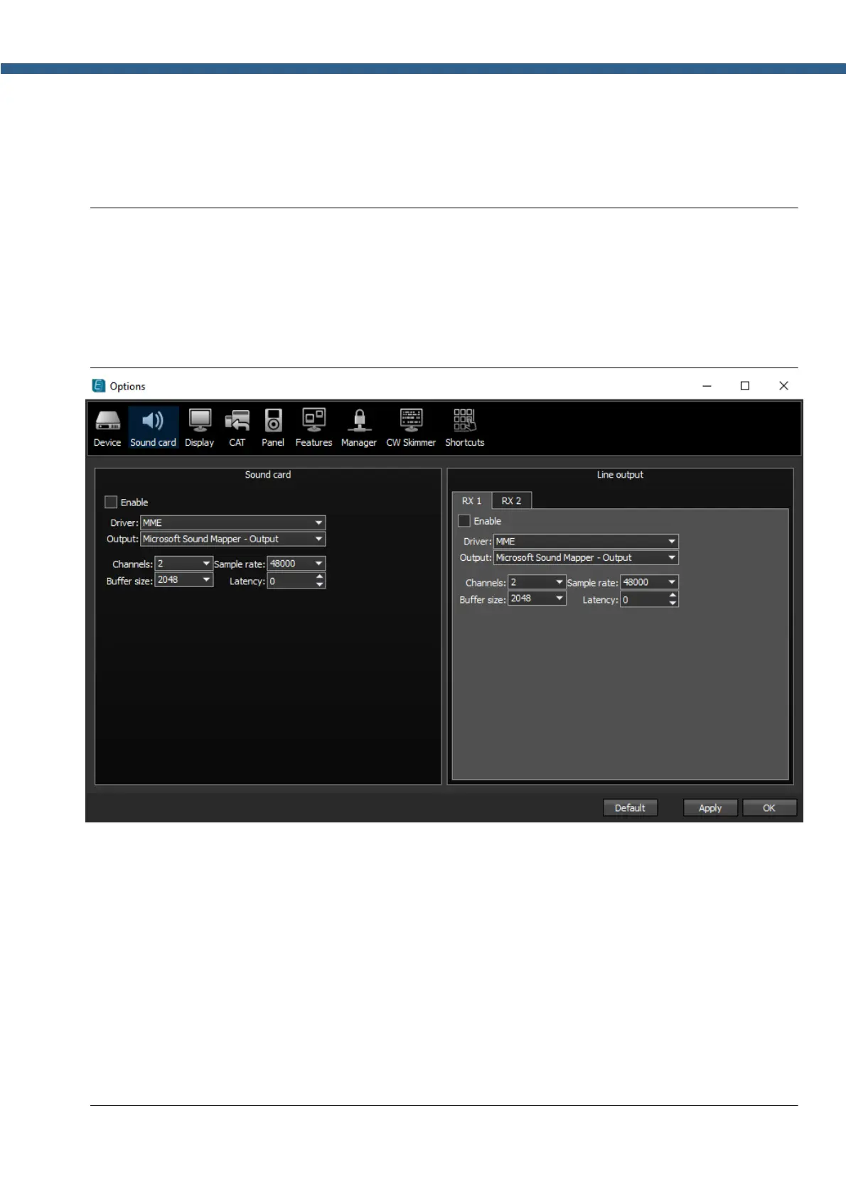 In the Sound card category you can see the settings of the sound card, which can be used for