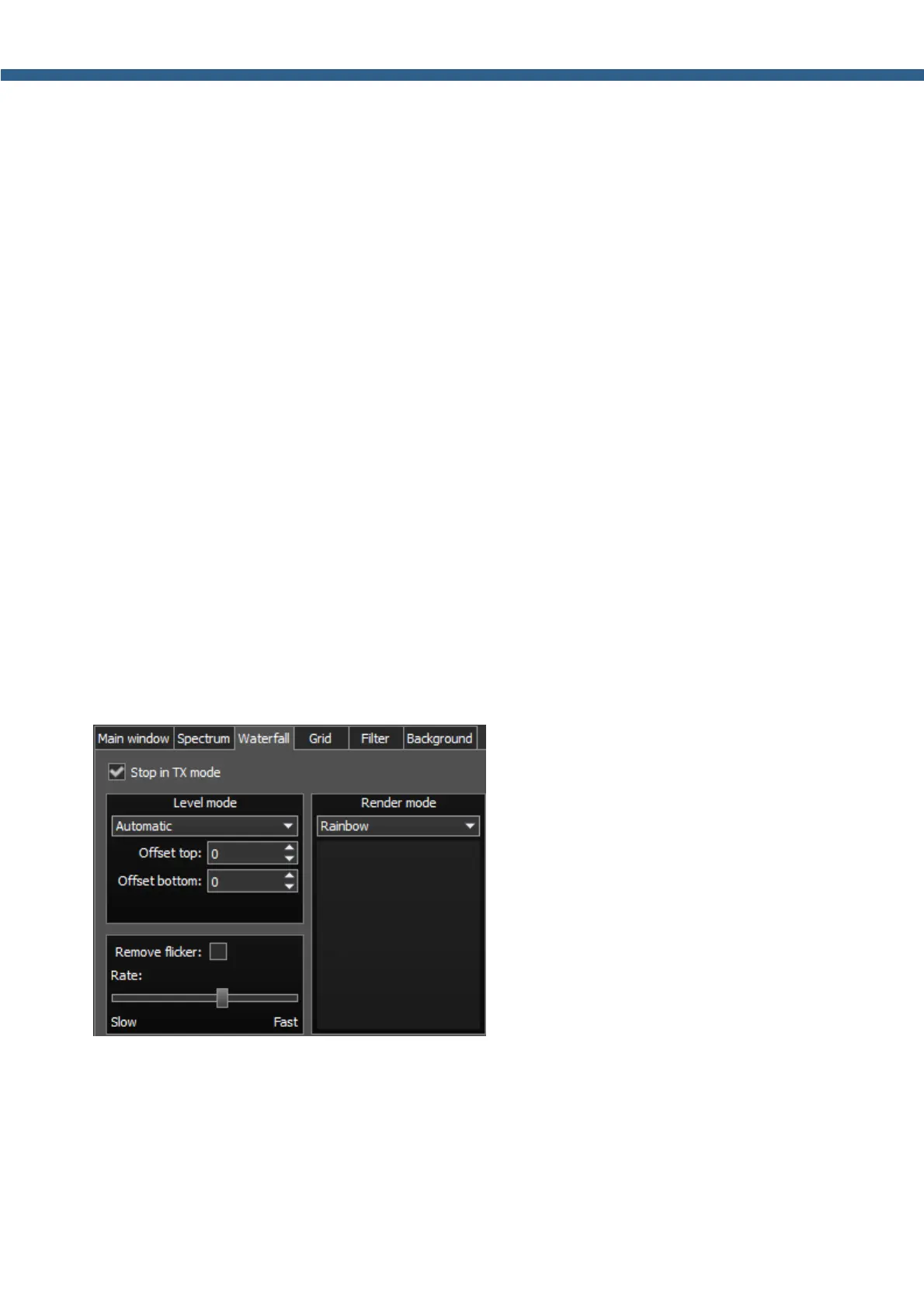 · Stop in TX mode - Stop the waterfall in TX mode.