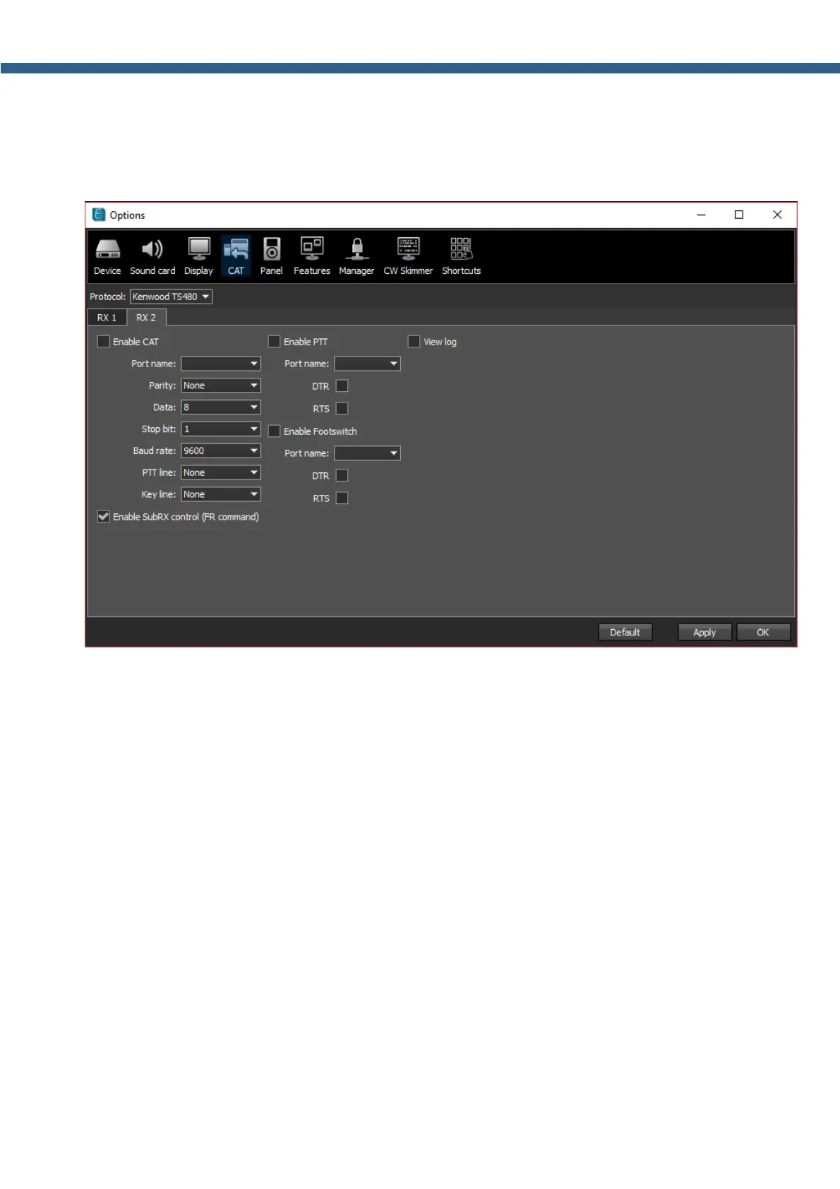 · Enable CAT – Checkbox to enable control of the transceiver via the CAT-system.