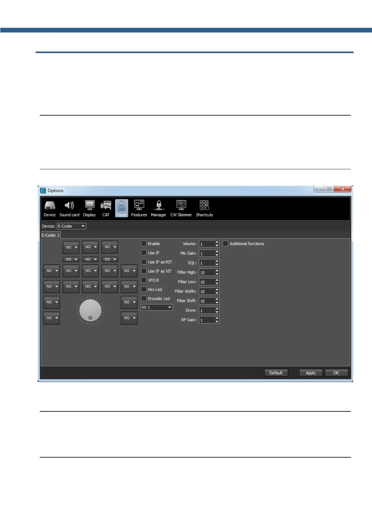 Coder 1 tab, if a several E-Coder panels are connected to the transceiver in the Panel menu