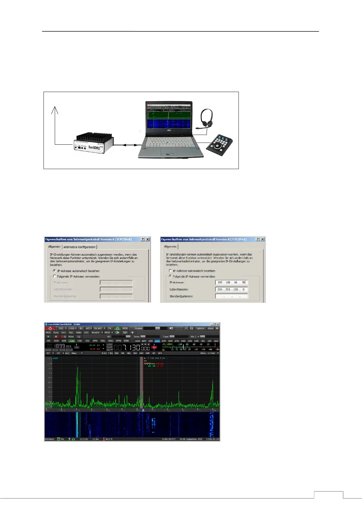 the SunSDR2 DX to the PC via an Ethernet cable (Fig. 1). For the PC to recognize the transceiver its IP