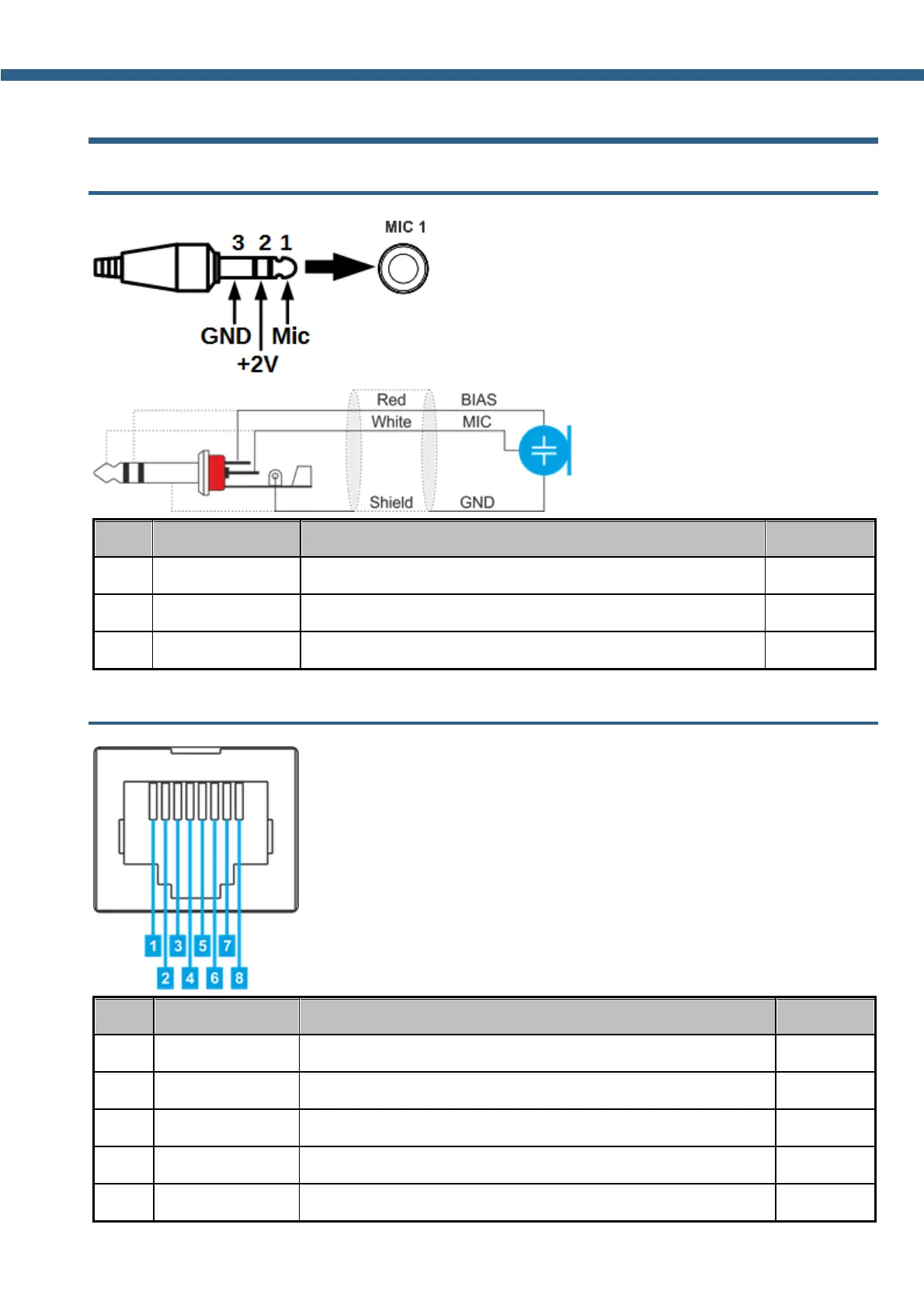 Expert Electronics SunSDR2 DX - Connector Pin-Out Details; MIC1 Connector Pin-Out; MIC2 Connector Pin-Out