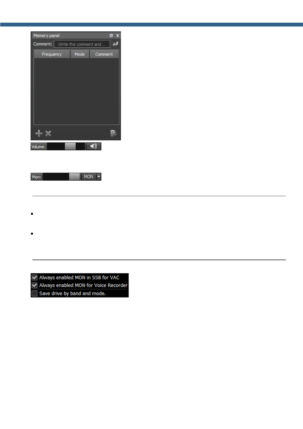 - Volume slider. This setting is stored per band, it affects the LF