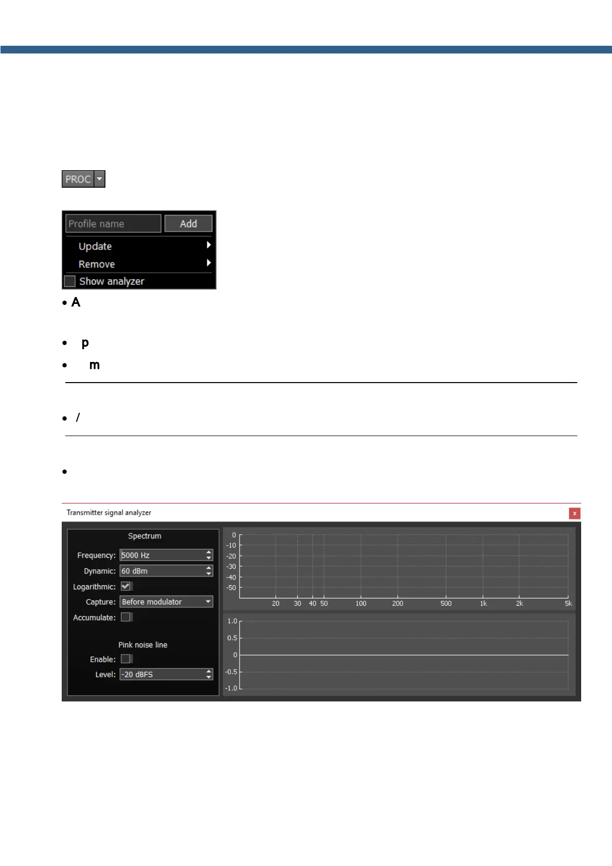 Show analyzer - enable it to activate Transmitter signal analyzer and analyze your own