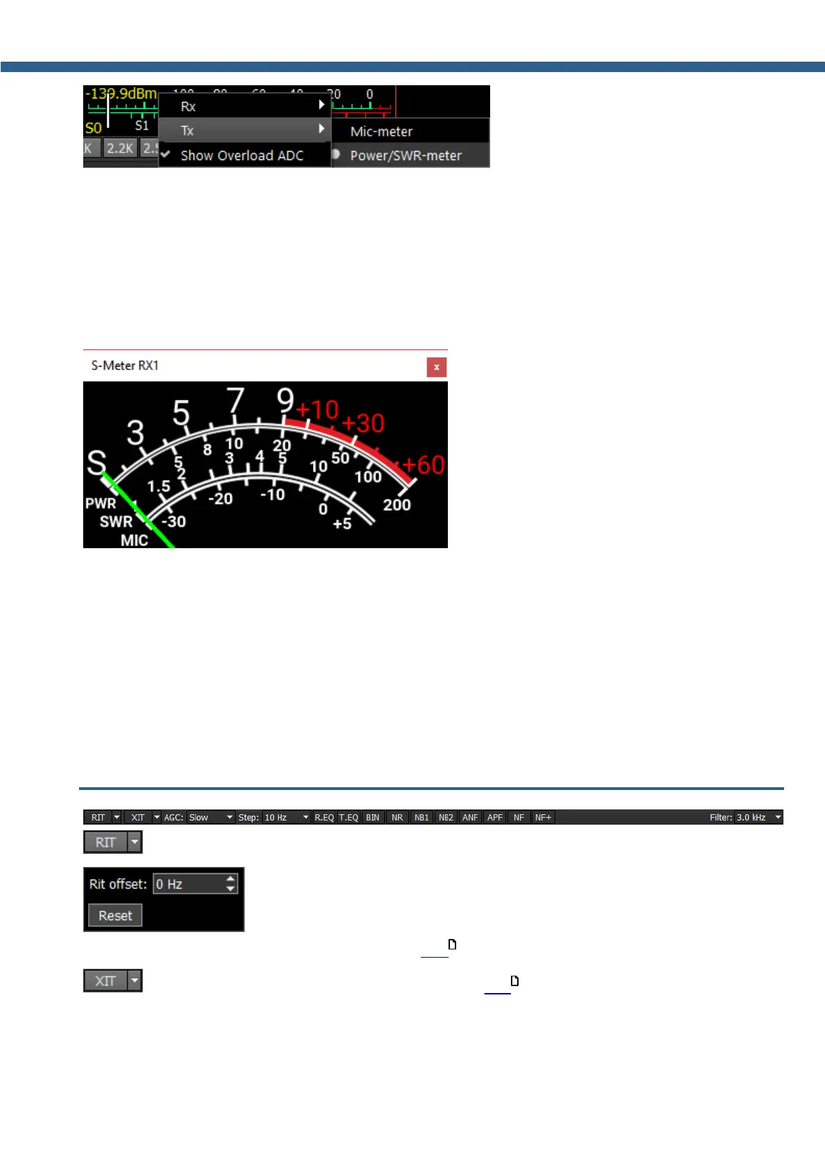 S-meter - Displays the level of the received signals in the receiver filter bandwidth (in units).