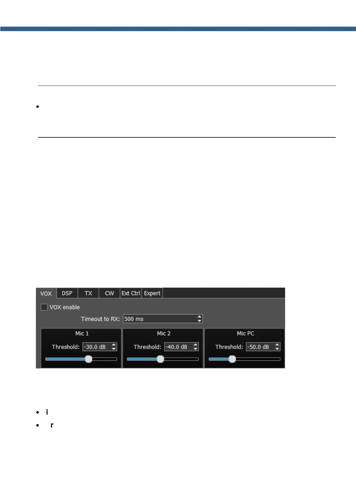 Set the VOX enable checkbox to enable VOX system.