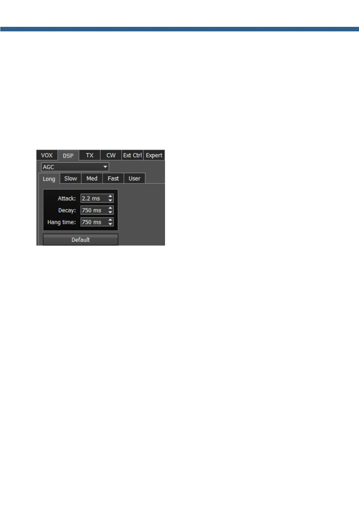 AGC values and don't like the result. Each AGC tab has a Default button.