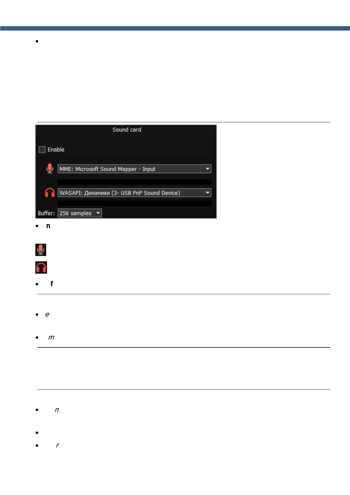 Signal output delay via the sound card can reach 250-500 ms. It can be adjusted with buffer