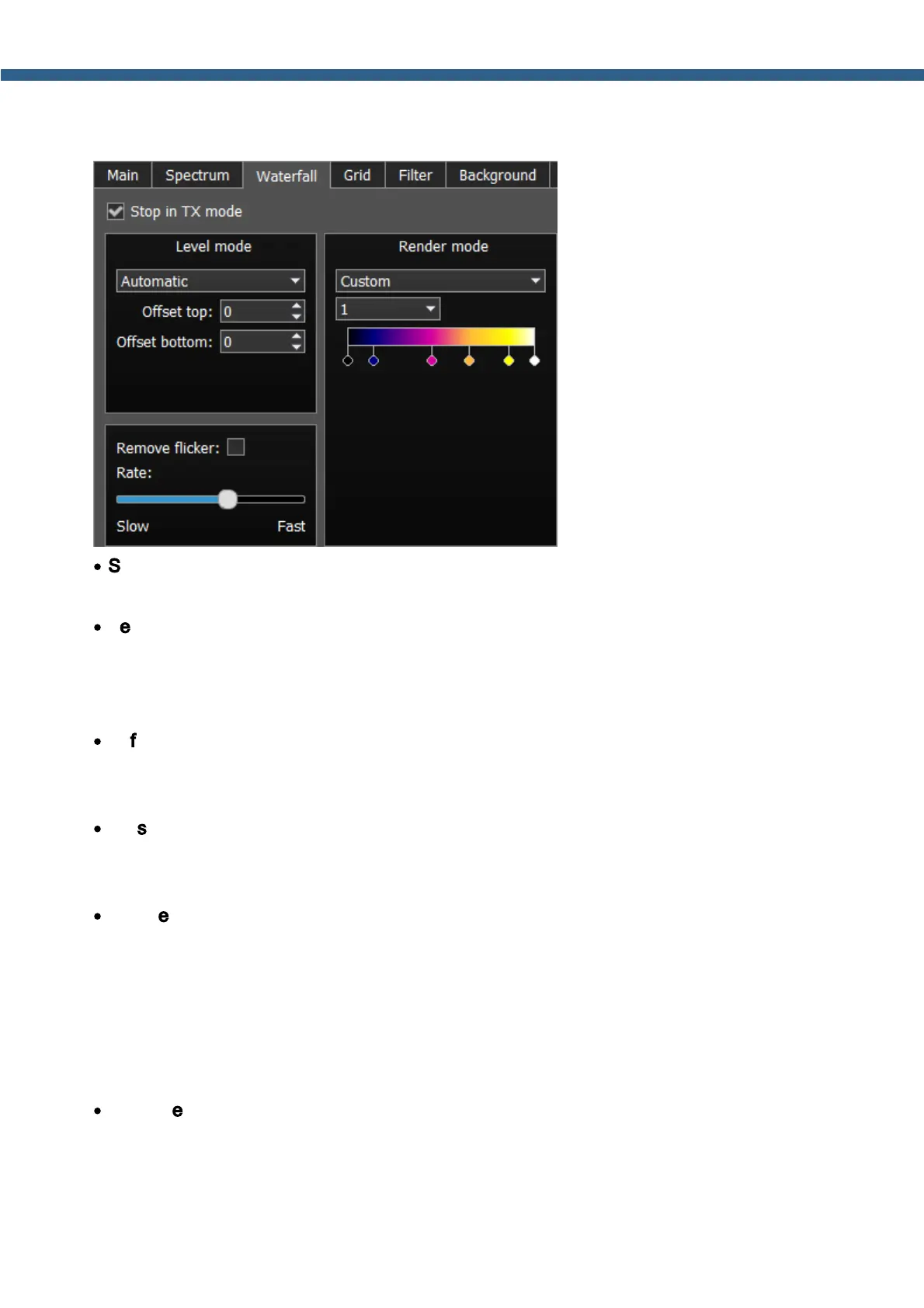 Remove flicker - Checkbox to remove the waterfall flickers.