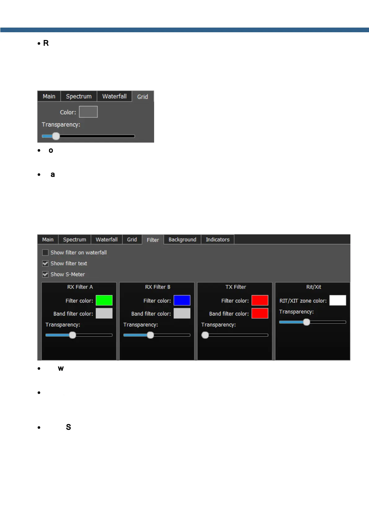 Show filter text – Show text info near the receiver's filter on the spectrum.