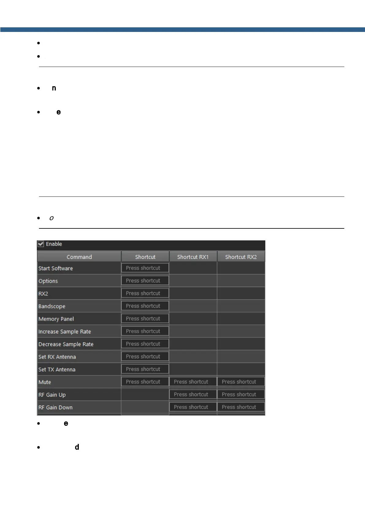 Shortcuts will be active only if the transceiver's software window is in focus.