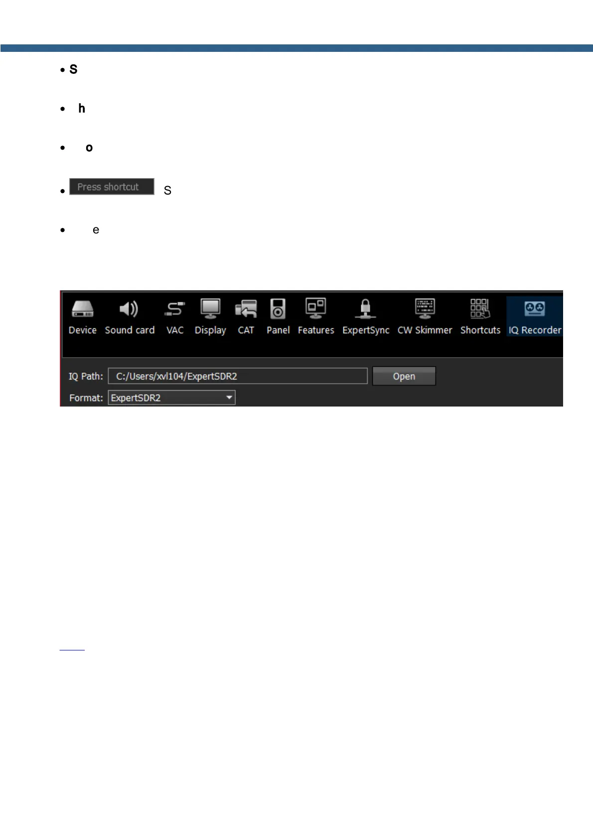 Format: select the format of IQ recording: ExpertSDR2, HDSDR or standard WAVE.