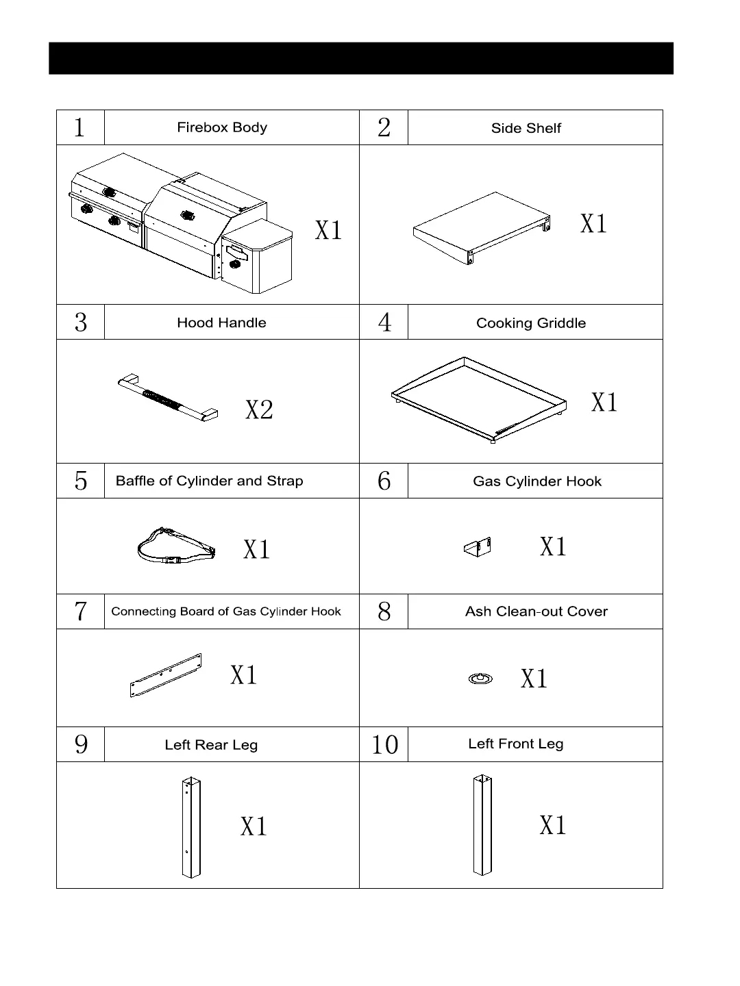EXPERT GRILL Concord - Parts List; Component Details and Quantities