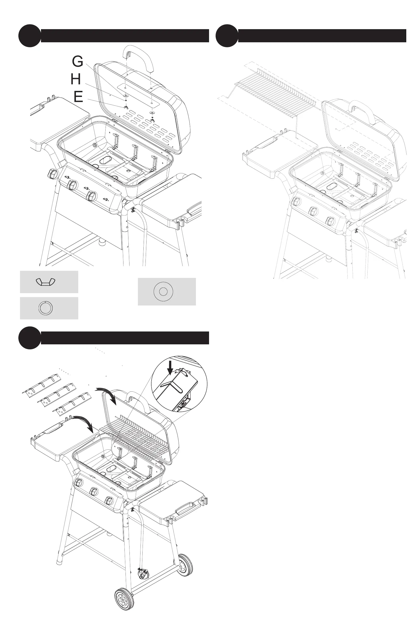 EXPERT GRILL GBC1716W-U - Final Assembly Steps; Step 9: Attach Handle, Heat Shield, Knobs; Step 10: Insert Warming Rack; Step 11: Insert Heat Plates and Cooking Grid